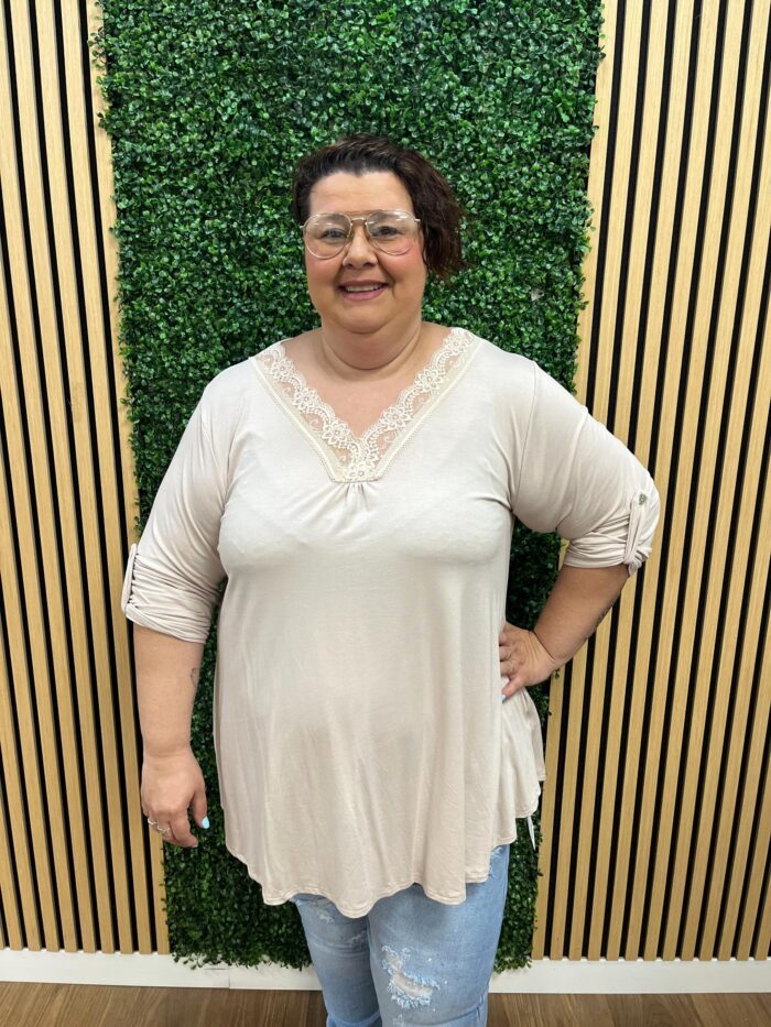 Las medidas de la modelo son; Pecho: 130cm | Cintura: 131cm | Cadera: 152cm | Brazo: 50cm