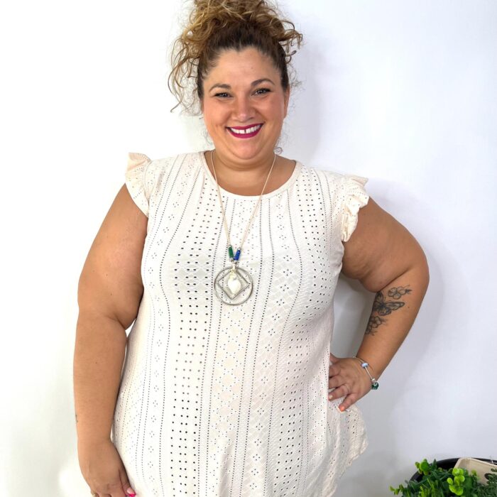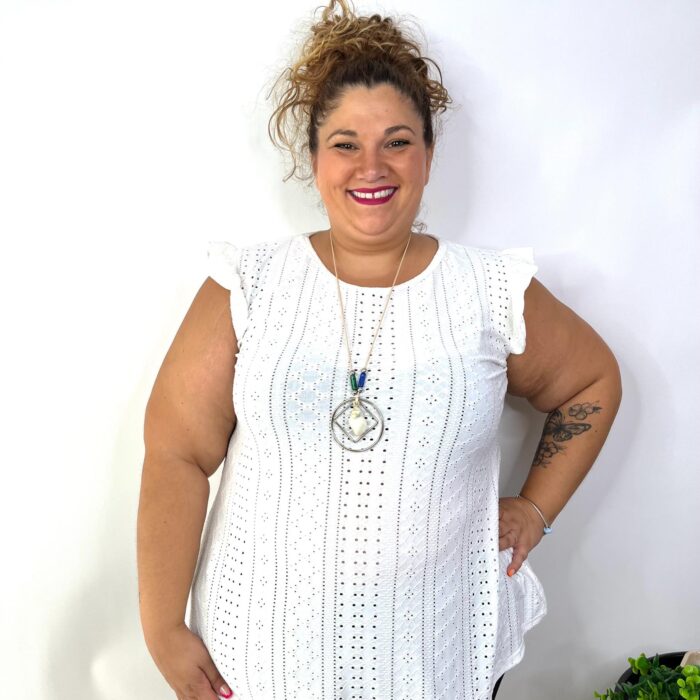 Las medidas de la modelo son; Pecho: 125cm | Cintura: 121cm | Cadera: 140cm | Brazo: 48cm