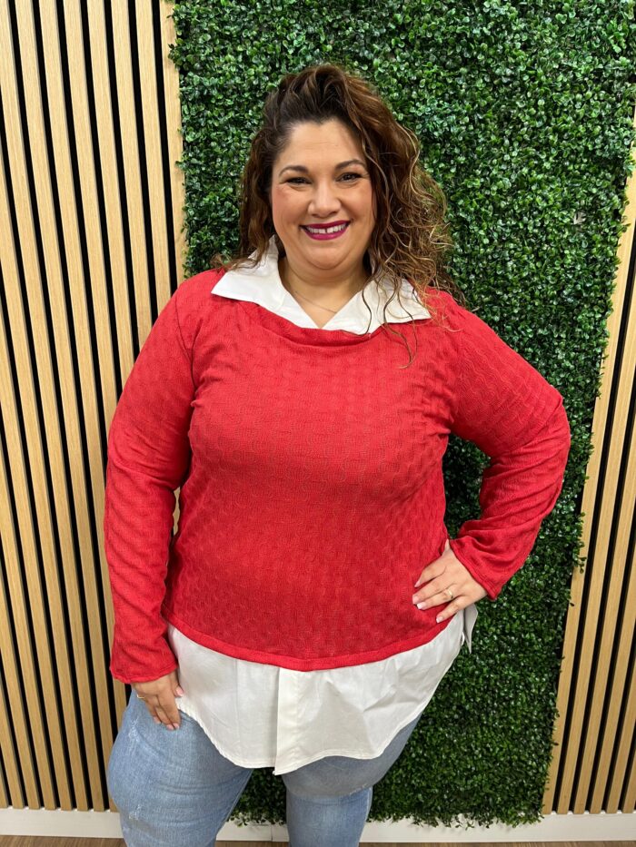 Las medidas de la modelo son; Pecho: 123cm | Cintura: 121cm | Cadera: 140cm | Brazo: 47cm