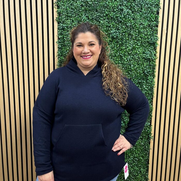 Las medidas de la modelo son; Pecho: 123cm | Cintura: 121cm | Cadera: 140cm | Brazo: 47cm