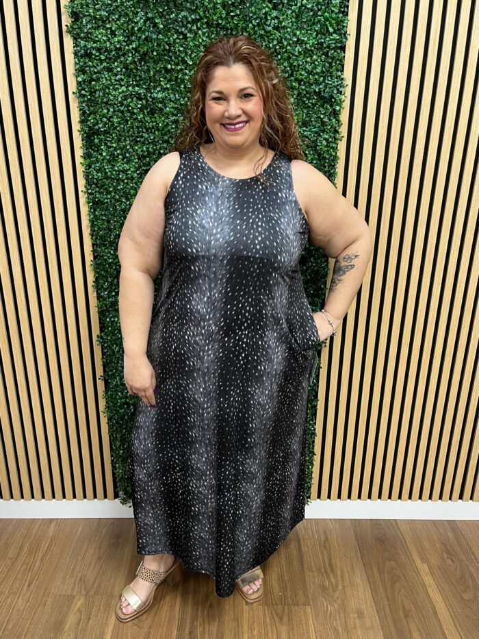Las medidas de la modelo son; Pecho: 120cm | Cintura: 120cm | Cadera: 140cm | Brazo: 46cm