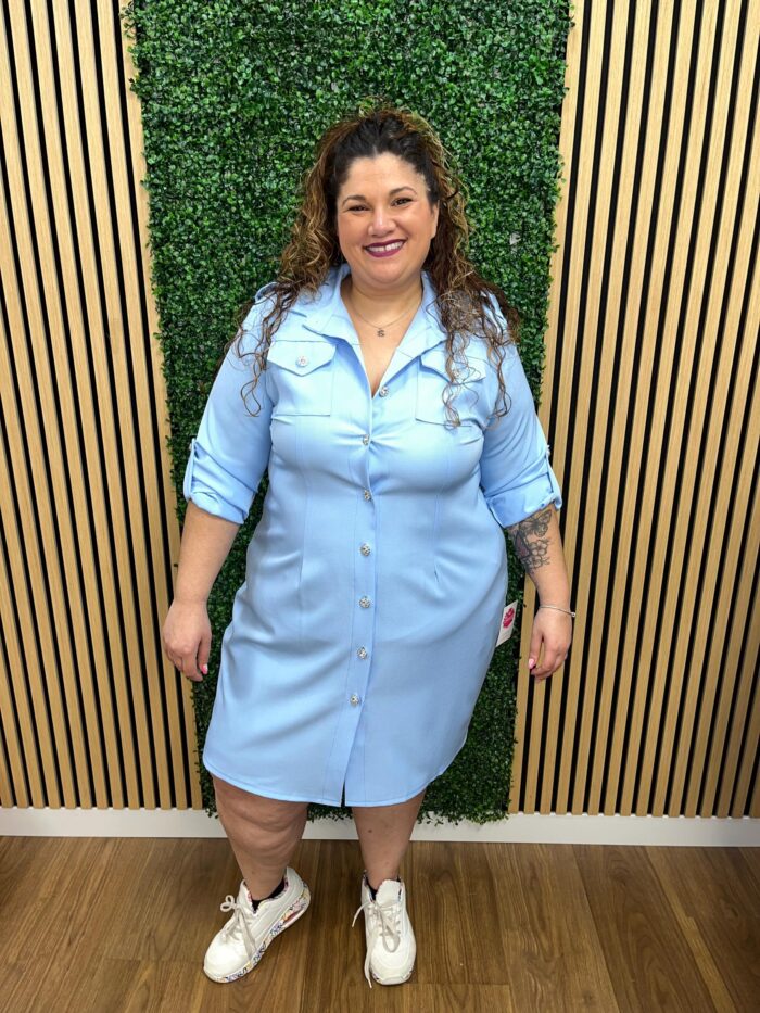 Las medidas de la modelo son; Pecho: 120cm | Cintura: 120cm | Cadera: 140cm | Brazo: 46cm